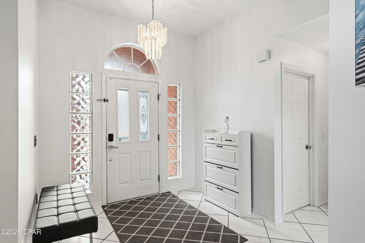 Beautiful brick home located in a desirable waterfront community with deeded access to the Santa Rosa Sound. This spacious residence welcomes you with an elegant entry that opens into a bright great room featuring vaulted ceilings and a cozy wood-burning fireplace. The open-concept split floor plan offers both comfort and functionality with 3 bedrooms, 3 full bathrooms, and a large bonus family room, perfect for entertaining or additional living space. New luxury vinyl plank flooring flows throughout the home. The updated kitchen is designed for gathering and everyday living, featuring quartz countertops, stainless steel appliances, a breakfast bar, and a dining area. The expansive primary suite includes a private sitting area or office space, a large walk-in closet, and a luxurious bathroom with skylights, a sunken whirlpool tub, separate shower, and double vanity. Enjoy outdoor living year-round in the large screened-in porch complete with a 6-person hot tub that conveys with the home. The backyard is beautifully maintained and includes a full irrigation system with new pump and well, storage shed, outdoor fireplace, and a brand-new privacy fence. Roof is 3 years old, HVAC updated 1. 5 years ago and a new Water Heater last year. Residents enjoy a short walk to the community's private deeded access to the Santa Rosa Sound, which features a gazebo, picnic area, sandy beach, and private pier. With limited through traffic, the neighborhood offers a peaceful and safe setting for family and guests. Conveniently located just minutes from shopping, dining, Navarre Beach, and Hurlburt Field, this home offers the perfect blend of comfort, location, and coastal lifestyle. Information, measurements, and details are deemed to be reliable but are not guaranteed. Buyer to verify information.