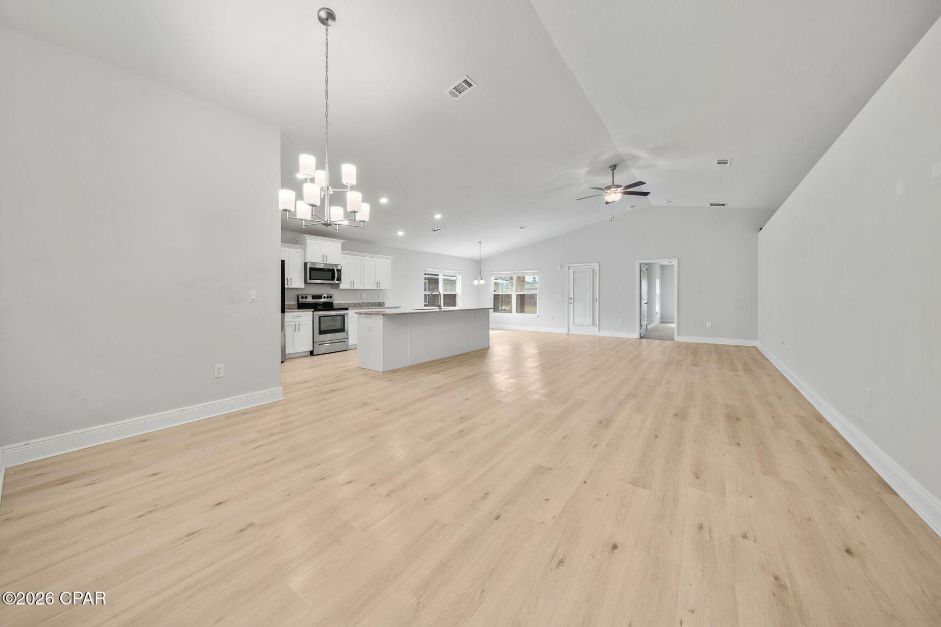 Welcome home to this brand-new listing in the highly sought-after College Station neighborhood of Panama City! This charming three-bedroom, two-bathroom home offers 1,901 square feet of well-designed living space that checks all the boxes for comfortable Florida living. The split floor plan gives everyone their own space, which is honestly one of the smartest layouts out there. The primary bedroom is a true retreat, featuring a large closet and a double vanity bathroom that makes morning routines a breeze. Vaulted ceilings throughout create an airy, open feel that makes the home live even larger than its generous square footage suggests. Vinyl plank flooring runs through the home, giving you that beautiful look without the fussy maintenance. The kitchen comes equipped with a pantry, because nobody ever complained about having too much storage. Ceiling fans keep things comfortable alongside the central electric system, and the garage provides covered parking plus extra room for all your stuff. The quality of construction here is evident in every detail, built to handle the Florida lifestyle with ease. The neighborhood puts you in a fantastic spot with Publix just minutes away for grocery runs, Zollie Young Dog Park nearby for your pets, and North Bay Haven Charter Academy right around the corner. Residents will also appreciate easy access to Mosley High School and even Florida State University Panama City for higher education options. This one is fresh on the market and ready for its new owners. Schedule your showing today before someone else calls it home!