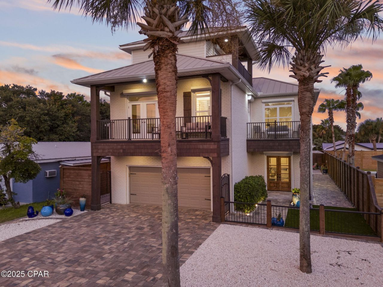 Coastal Elegance Just Steps from the Gulf in Bid-A-Wee! Welcome to 407 Petrel Ave, where beachside living meets modern luxury. Perfectly situated just a short stroll from the Gulf, this beautifully customized home offers stunning Gulf views so you can soak in the coastal vibe from sunrise to sunset. Inside, you'll find thoughtful design and upscale finishes throughout. The open-concept living space features soaring ceilings with exposed wood beams and a cozy fireplace, creating a warm yet refined coastal aesthetic. The chef's kitchen is fully equipped with commercial-grade stainless appliances, a gas range, double ovens, a walk-in pantry, a wine fridge, and a massive island--perfect for entertaining family and friends. There's also a custom wet bar for cocktail hour, and built-in closets throughout the home, including in the garage. This property offers four spacious bedrooms and three luxurious baths, including a stunning primary suite. The master bathroom is a true retreat with a walk-in shower, soaking tub, elegant fixtures, and striking designer finishes. Step outside to your private backyard oasis, where you'll find a heated jacuzzi/pool surrounded by travertine tile, lush tropical landscaping, and a putting green with artificial turf. The outdoor kitchen and bar area include seating, a built-in grill, a sink, and a mounted TV, creating the perfect spot for game days, gatherings, or relaxing evenings under the stars. For added convenience, there's a full outdoor bathroom with a shower--perfect after a beach day or pool party. The oversized garage includes custom cabinetry with a rolling ladder, giving you all the extra storage you need while keeping the space neat and organized. Privacy fencing surrounds the property for a true backyard escape, and there's plenty of parking for guests or golf carts. Whether you're looking for a primary home, a beach getaway, or an investment property, 407 Petrel Ave delivers the best of coastal living with all the luxury upgrades.