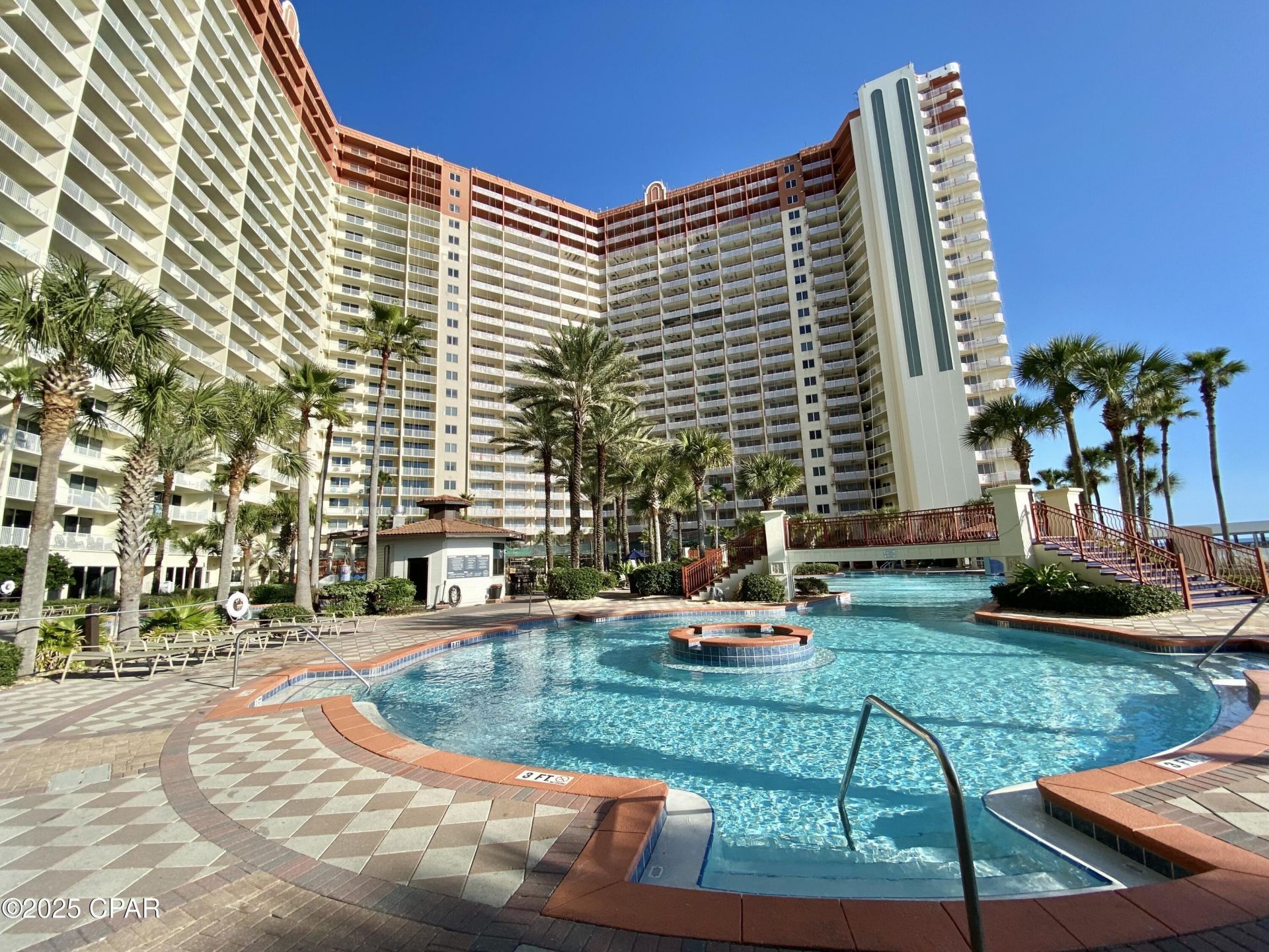 AMAZING VIEWS FOR MILES! 23rd Floor Gulf Front Penthouse Condo in Shores of Panama. You won't find better views and large balcony for this price! This Top Floor Penthouse unit sleeps 6 and has one full bedroom and bath, bunk room and bath, spacious living room/dining area and modern kitchen. Kitchen has granite countertops, stainless steel appliances, updated cabinets and is fully stocked for the upcoming rental season. Also comes Fully Furnished so turnkey ready to go! Lush Landscaping, Dolphin Fountains and pool space galore! Shores of Panama is a 23 story Tuscany style condominium. The complex offers amenities including around 500' feet of Gulf frontage, 14k square foot Gulf-side, zero entry gulf side pool, hot tub, heated indoor pool & hot tub, covered on-site parking garage, fitness center, two full-service bars serving lunch and dinner, beach events and rental services, high-speed internet access, and more! Buyer and Buyers agent to verify all dimensions and anything deemed important.